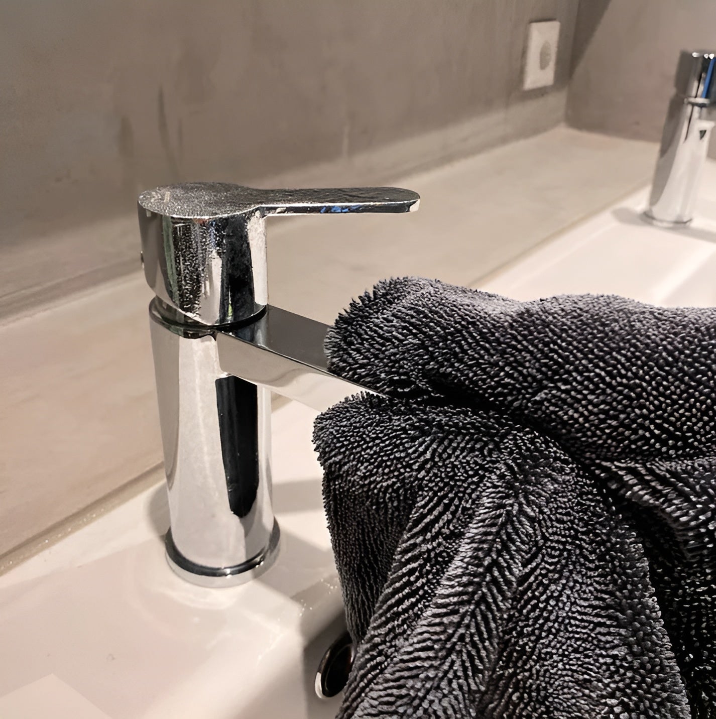 Ontdek de kracht van ClearWipe™ , de ultieme handdoek die elke schoonmaakklus moeiteloos aanpakt. Dankzij de uitzonderlijke absorptiecapaciteit neemt ClearWipe™ grote hoeveelheden vocht op, waardoor uw badkamer snel droogt en schimmelvorming wordt voorkomen. De speciaal ontwikkelde vezels verwijderen hardnekkige kalk met slechts één veeg, waardoor oppervlakken glanzen zonder strepen achter te laten.